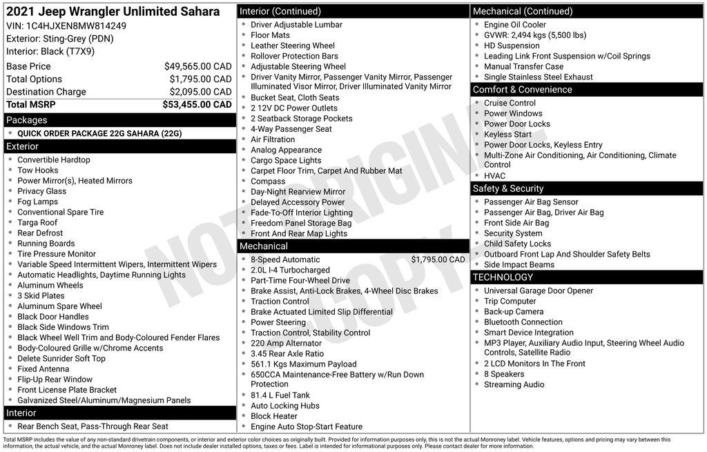 Boasting a powerful 2.0L I4 DOHC engine paired with an 8-Speed Automatic transmission and 4-Wheel Drive, the Wrangler Unlimited Sahara delivers an impressive blend of capability and efficiency, earning an EPA-estimated 21 MPG in the city and 24 MPG on the highway.